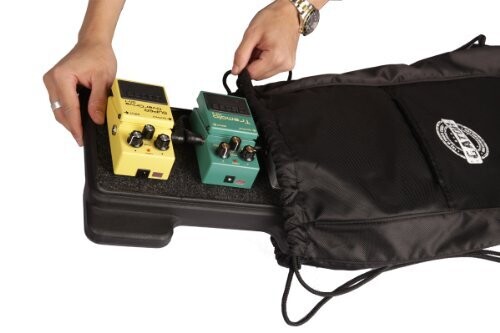 USA Made Rotationally Molded Polyethylene Pedal Board with Hook and Loop Friendly Velcro Surface (Velcro Included). Accommodates up to 3 small Guitar Pedals. Convenient "Cinch" Tote Carry Bag with Accessory Pocket Included. Pedal Board Dims:
