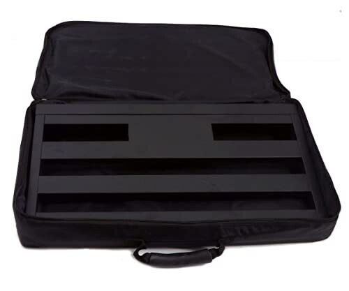A durable, portable gig bag designed to protect and transport your guitar effects pedal board. It features a padded interior, sturdy carrying handle, and a compact 23.6 x 13 x 4 inch size, in classic black for versatile use.