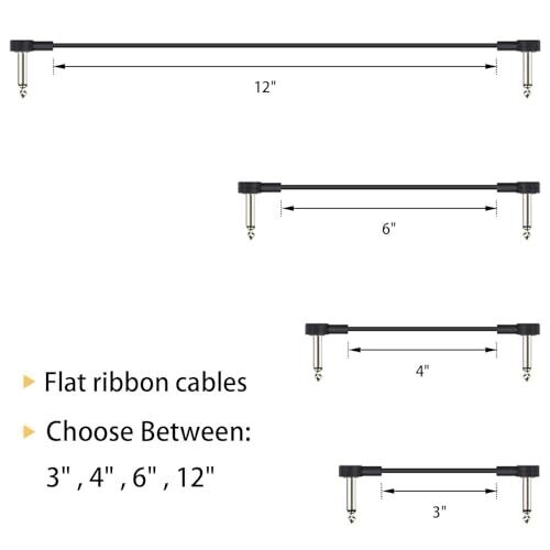 Tonecore Guitar Patch Cables 12 Inch, 1/4 TS Right-Angle – Noise-Free Pedalboard Set
