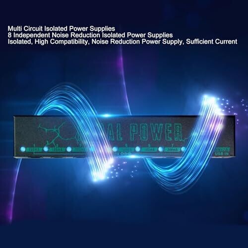 Power your guitar or bass setup with eight isolated 9V outputs in a compact aluminum unit. Independent rails keep noise low, preserve tone, and simplify cable management for live, studio, and home practice where space and reliability matter.