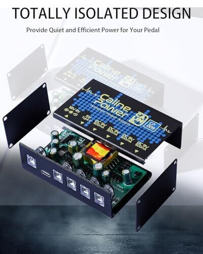 Caline’s compact pedal power supply delivers clean 9V DC power for multiple effects with isolated outputs to prevent hum and interference. It provides four high-current 9V outputs (up to 500mA each), plus a Type-C port for charging and accessories.