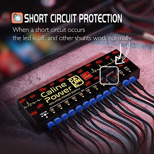 Caline CP-206 delivers noise-free, true-isolation power for pedalboards with twelve independent outputs. Each outlet stays on its own clean power plane, with protection and bright blue indicators; compact aluminum housing at 300g makes transport and mounting easy.