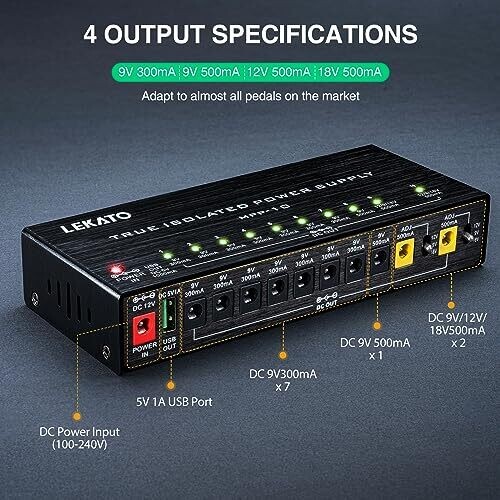 Introducing the LEKATO Guitar Power Supply — a high-performance power hub designed for serious players, studios, and live performances. This compact unit delivers clean, reliable power to your entire pedalboard, helping you focus on your tone without noise or interference.