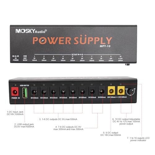- USB output plus multiple DC outputs to power pedals, controllers, and accessories