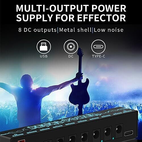 - Power your guitar pedals with clean, isolated supply for quiet, noise-free operation.