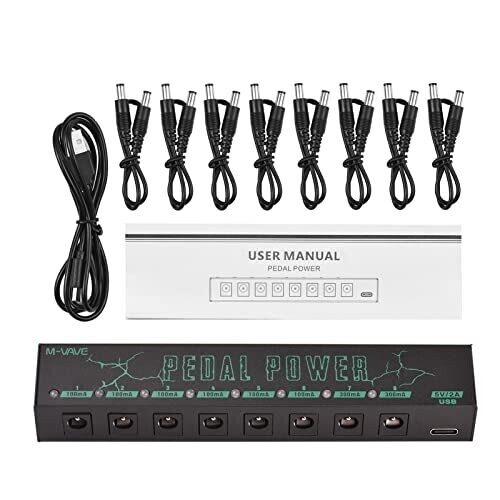 Power your electric guitar effects with a compact, reliable supply. Eight isolated 9V outputs minimize noise and crosstalk, while a mini chassis fits tight boards. LED indicators show each output status; includes Type-C cable and DC cords for quick setup.