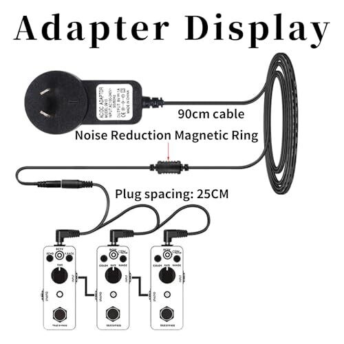 Tunghey 9V DC 1A Pedal Power Supply with 3-Way Daisy Chain for Pedalboards