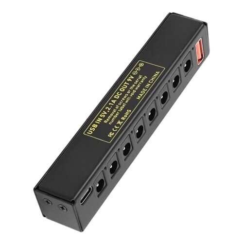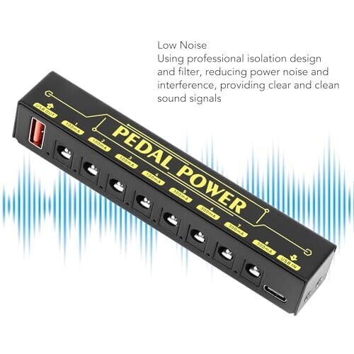 - Eight isolated output slots to power multiple pedals and music devices simultaneously.