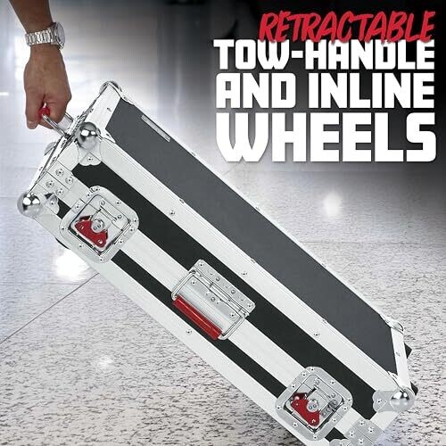 • Designed with convenience in mind, the retractable tow handle and inline wheels make rolling this pedal board effortless from stage to studio to van.