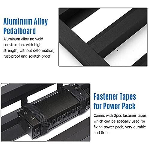 A large aluminum alloy pedal board designed for serious players, offering sturdy support and a premium stage look. Lightweight and portable, with a 15° incline, frosted surface, fastener tapes, and a 600D padded carrying bag for safe transport.
