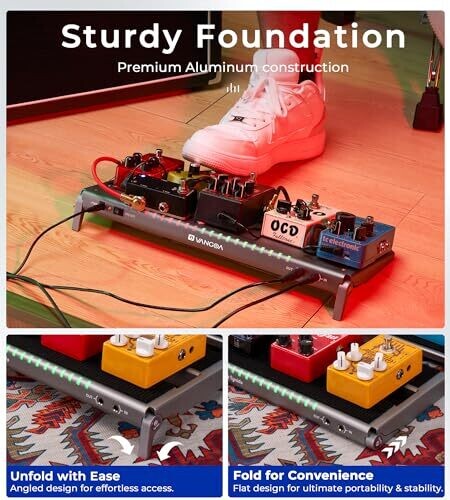 • Vangoa Pedal Board with Isolated Power Supply, Aluminum, Folding Portable Guitar Pedalboard