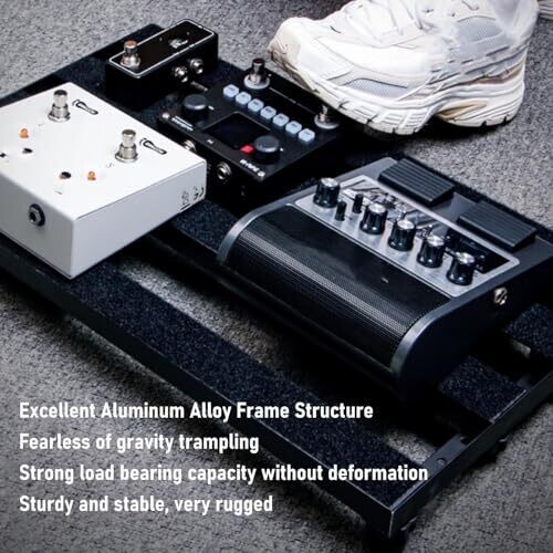 • Portable 19"x5" aluminum alloy pedalboard designed for easy transport and storage, offering a lightweight, travel-friendly profile for on-the-go gigs.