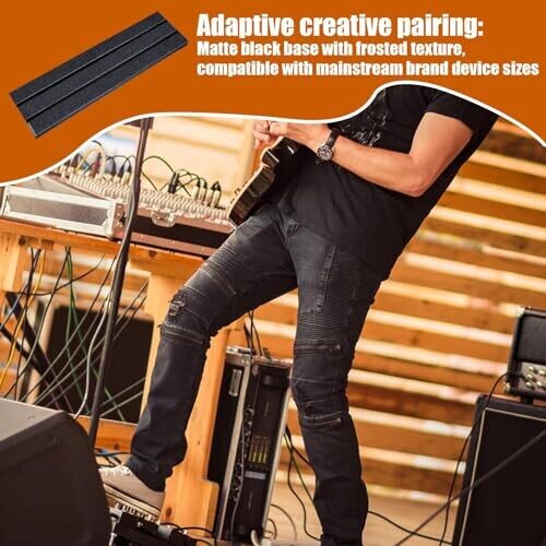 Gihioue Effect Pedalboard is an alloy construction pedalboard designed for portable effects boards kits suitable for stage and home use; it features modular convenience for rapid assembly and storage, and enhanced cable management with horizontal and vertical slots to reduce wire clutter and improve signal routing. The board uses multi-layer coating for wear resistance and a hard alloy construction achieved through precision aluminum forging to maintain shape and strength over time, reducing deformation risk. The texture is sandblasted with a matte black base to support creative tone setups and compatibility with multiple brands. An anti-slip design employs high-density strips to provide full adhesive coverage for secure pedal attachment and stable transport during travel.