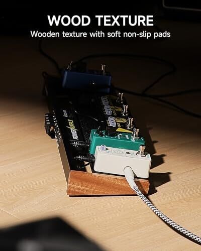 Donner’s compact aluminium pedal board includes a built-in power supply, multiple outputs with independent voltages, and a USB port. It’s lightweight yet sturdy, with a wood-textured finish, ergonomic design, and all-in-one travel kit for quick setup and secure organization.