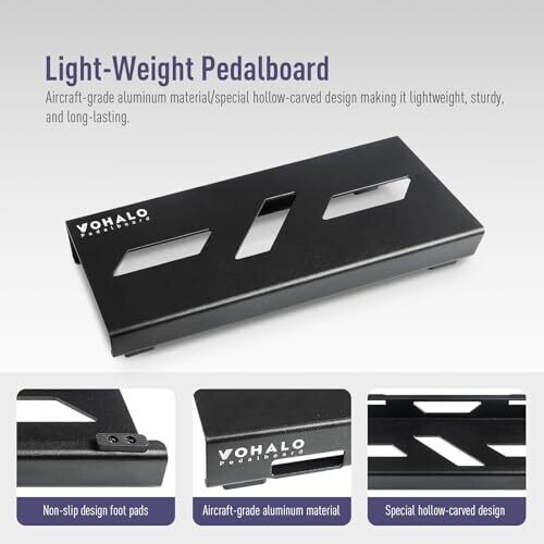 VOHALO Mini Guitar Pedal Board provides a sleek, compact platform to organize effects for stage or rehearsal. It fits 3–4 mini pedals, includes mounting tape, cable ties, patch cables, and anti-slip feet for secure, quick setup.