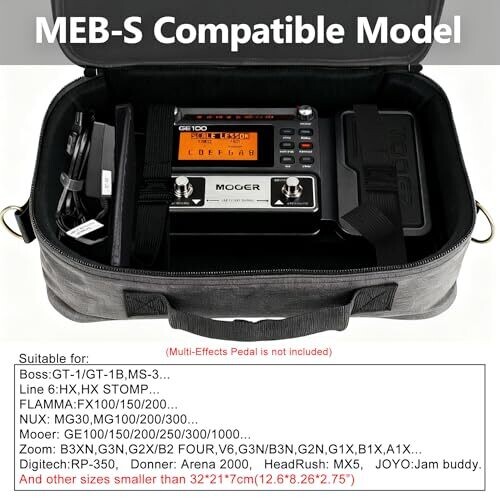 Designed to fit popular pedal models such as Boss GT-1, FLAMMA FX200, NUX MG30, Mooer GE300, Zoom G3N, and more. Fits devices under 13.4 x 8.7 x 3.5 inches (34 x 22 x 9 cm). Materials