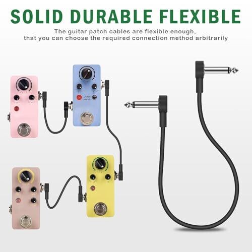 Tanstic 6pcs 12-Inch Guitar Patch Cables - 1/4 Right-Angle Pedal Cables, Black