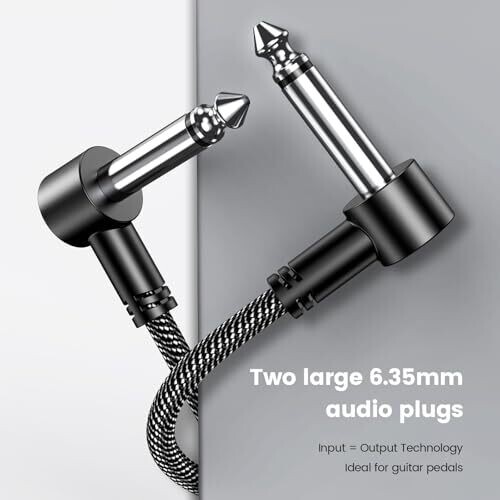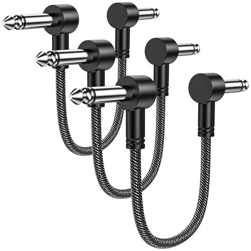 MOSWAG Guitar Patch Cables 3 Pack provide compact, durable 6-inch patch cables with right-angle 1/4 inch plugs. Designed for pedal boards, these cables deliver clean signal transfer and minimal tone loss, compatible with electric guitars and a wide range of effects pedals.