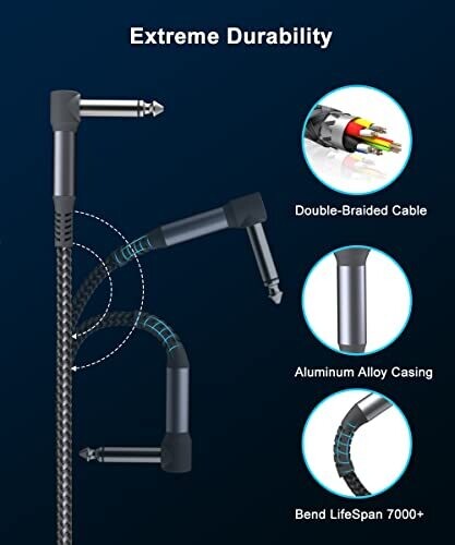 Ruxely Guitar Patch Cables deliver pro-grade connectivity for pedalboards with reliable, noise-free performance. Nylon braided exterior resists wear, while right-angle 1/4
