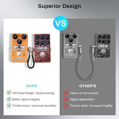 • Space-saving design with flat heads and right-angle plugs to maximize pedalboard space and keep a tidy setup.