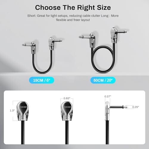 • Vangoa 6-Inch Guitar Patch Cables 3-Pack Ultra-Quiet Right-Angle Pedalboard Cables