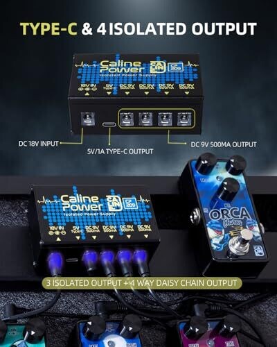 Caline 9V 500Ma Pedal Power Supply — Isolated, Type-C Output & 4 Daisy Links