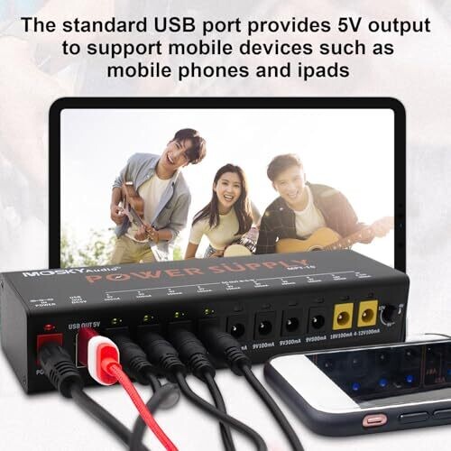 - USB output plus multiple DC outputs to power pedals, controllers, and accessories