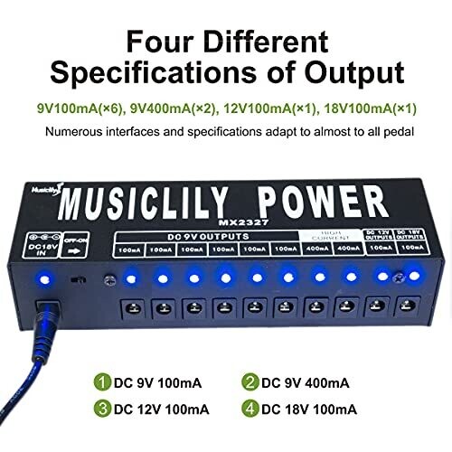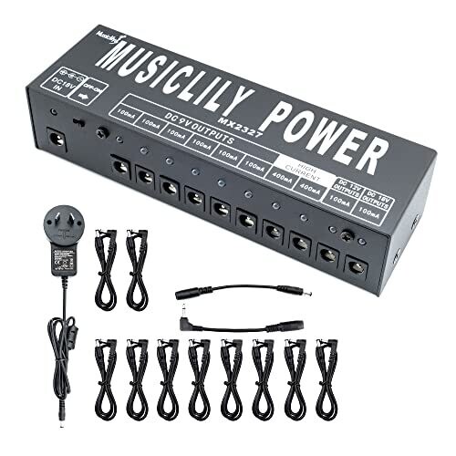 Musiclily Pro Guitar Pedal Power Supply delivers clean, isolated power to your pedalboard, keeping tones crisp and free from hum. With 10 outputs, AU standard adapter compatibility, and built-in protection, it safely powers 9V, 12V, and 18V effects for professional setups.