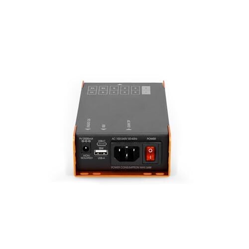 • Palmer PWT 12 IEC Universal Pedalboard Power Supply with USB, 12 Outputs, Black/Orange — built for reliability and on-stage confidence.