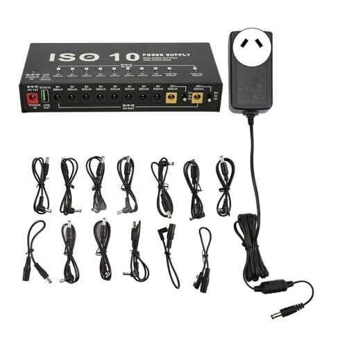 Power your pedalboard with a versatile 10-output isolated DC power supply. Clean, noise-free operation for each effect, plus a USB port for LEDs or charging devices. Durable metal chassis with AU plug for regional compatibility.