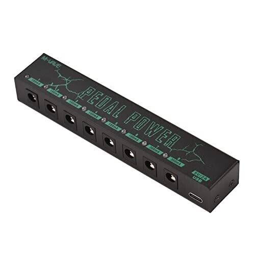 Power your electric guitar effects with a compact, reliable supply. Eight isolated 9V outputs minimize noise and crosstalk, while a mini chassis fits tight boards. LED indicators show each output status; includes Type-C cable and DC cords for quick setup.