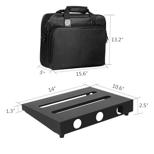The SOYAN SPB-14 pedal board measures 14 by 10.6 inches and includes a durable carry bag. Designed for compact pedal setups, it keeps pedals organized, provides a non-slip surface, and offers easy transport for gigs and studio sessions.