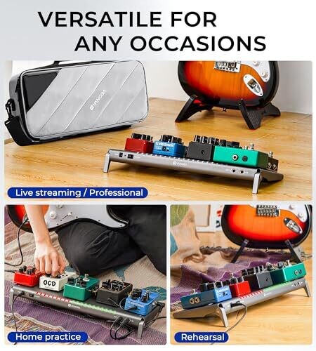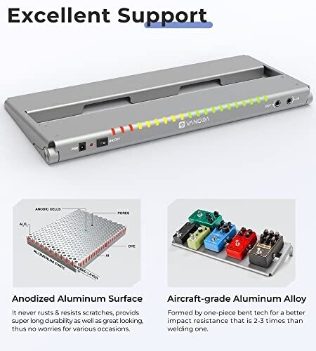 • Vangoa Pedal Board with Isolated Power Supply, Aluminum, Folding Portable Guitar Pedalboard