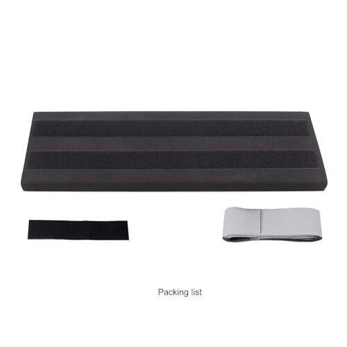 The product is a lightweight guitar pedal board made from high-density EVA material, providing durable support for effects pedals. Dimensions are 50 cm × 15 cm × 4 cm. The design includes side strips for securing compact power supplies to maximize usable surface area. The package includes an EVA pedal board for organizing pedals immediately upon unboxing. The board is designed to be portable and sturdy for various performance settings.